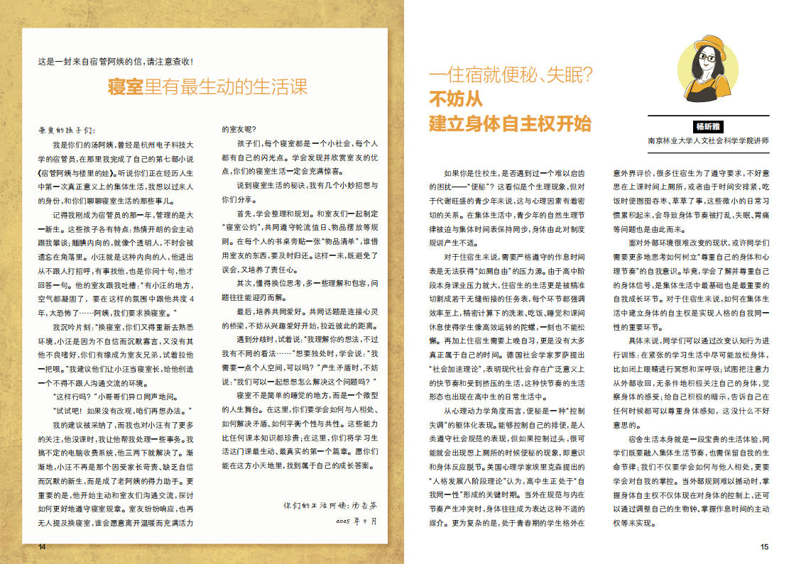 “妈———”离开父母的环绕式唠叨和贴身关怀,原以为可以自由地驰骋,却发现处处是生活的关卡。直面集体生活、自我管理、生活技能……走出高中宿舍这个“新手村”,才能全副武装地前往更大的世界升级打怪!