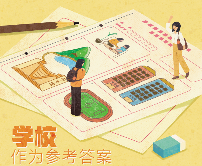 每个学校里,除教学楼外,一般都有图书馆、食堂、宿舍、心理室、实验楼、体艺馆……在这些经典的非考学的场景里,到处是关于生活的试题,如自主学习、自我认知、合作共享、集体生活等,答案也藏在其中,具体且丰富,而不仅仅是“略,有理即可”。